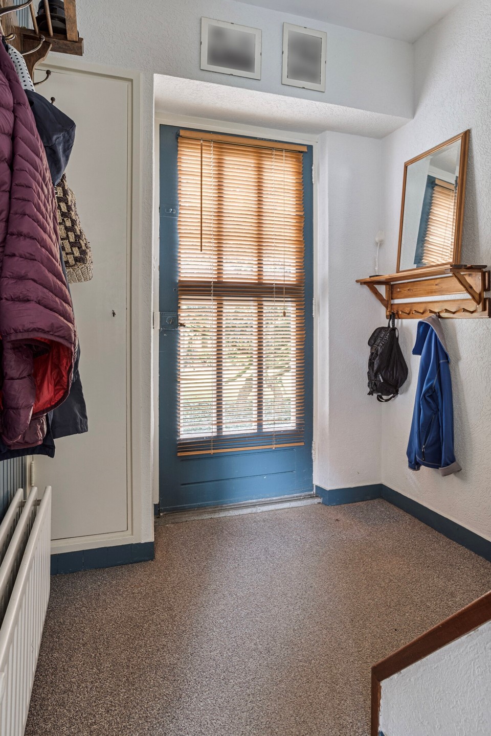 De benedenverdieping heeft een PVC-vloer en een plavuizenvloer. In de achterliggende Domeinschuur is de tweede woonkamer en een kantoor gevestigd.